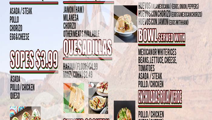 Lastly, the Sopes add a unique touch to the menu with the Sope de Queso and Sope, both offering a thick, handmade corn tortilla base topped with a variety of fresh ingredients and flavors, perfect for a light yet filling meal.